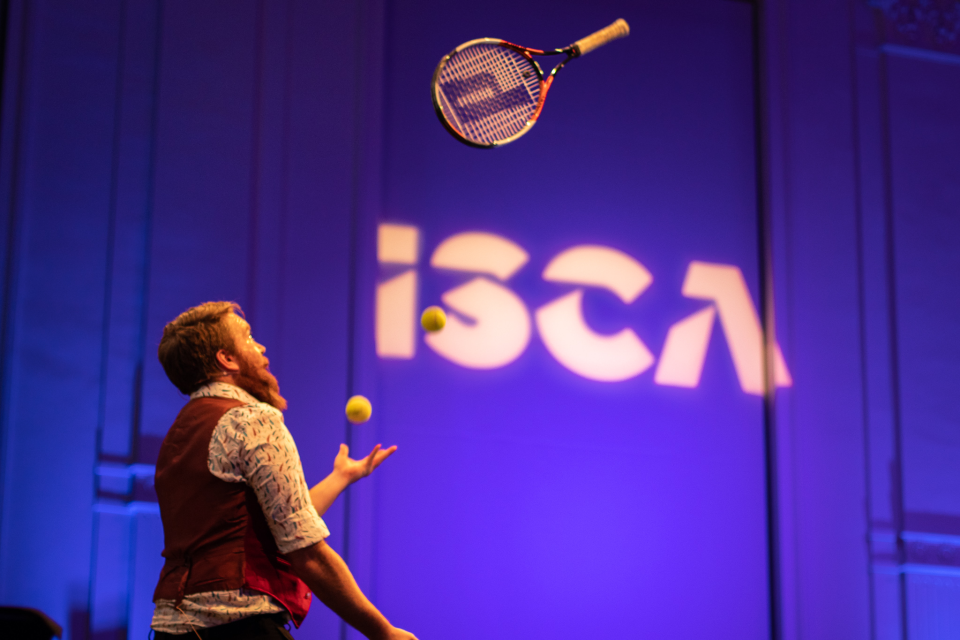 Now, what was that on our seats in the Ticket Window Hall auditorium? All was revealed when professional juggler Will Borrell from Ecole de Cirque de Bruxelles entered the stage – one, two, three, SEVEN juggling balls? A cricket bat, football and tennis racquet? Everything is possible, he told us – and if you drop one, you just RESTART.